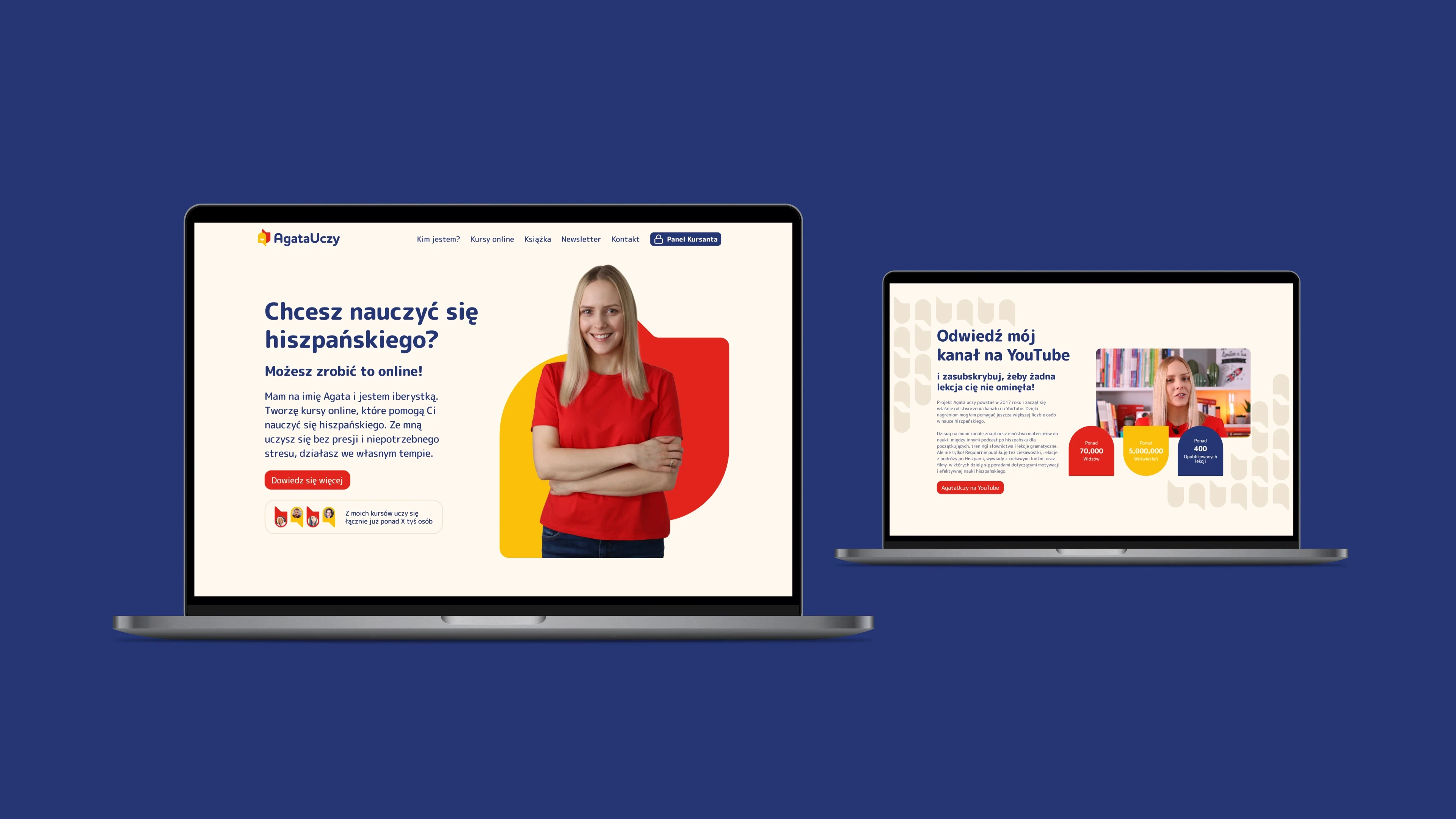 Współpraca z Agatą była bardzo dobrym doświadczeniem i obejmowała stworzenie nowej identyfikacji wizualnej. Skupiłem się na tym, aby branding komunikował więcej pozytywnych emocji i otwartości. Dlatego logo opiera się na dialogu pomiędzy dwiema literami: A i U.