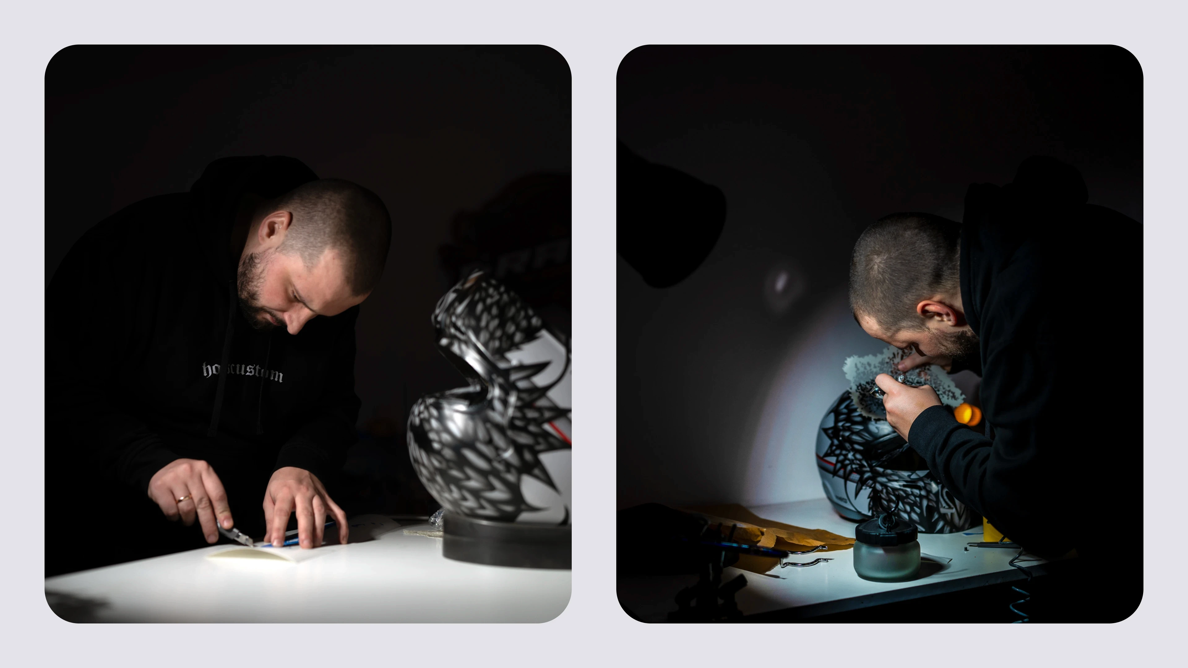 Celem współpracy było zaprojektowanie logotypu, który dobrze działa zarówno w małych, jak i dużych formatach, z uwzględnieniem specyfiki działalności Piotrka, czyli personalizacji kasków motorsportowych. W ramach projektu powstał uniwersalny znak, który zawiera element graficzny w postaci litery „H”, subtelnie ukrywającej kształt kasku w negatywie.
